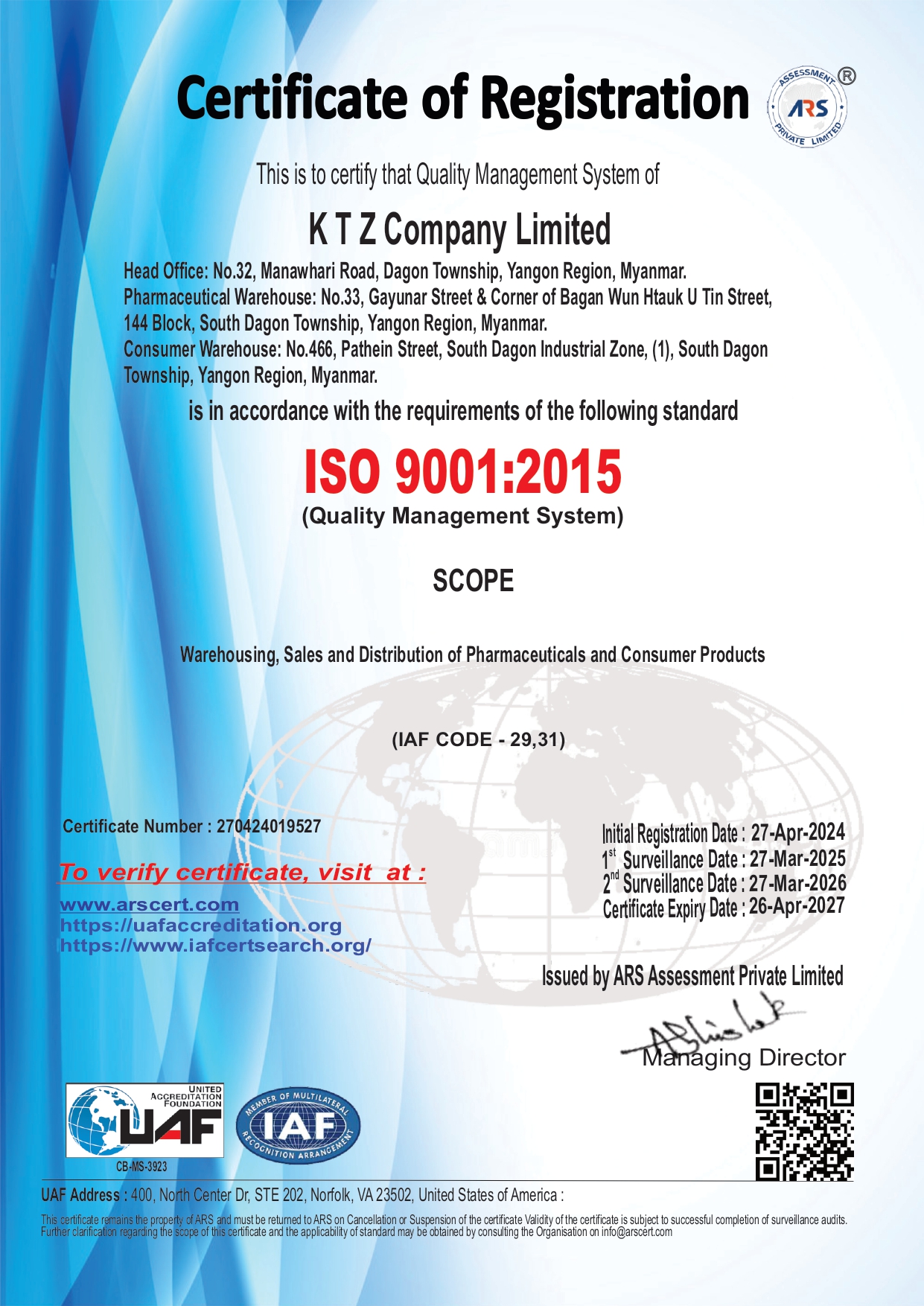 Achieved ISO 9001:2015 (QMS) certification.