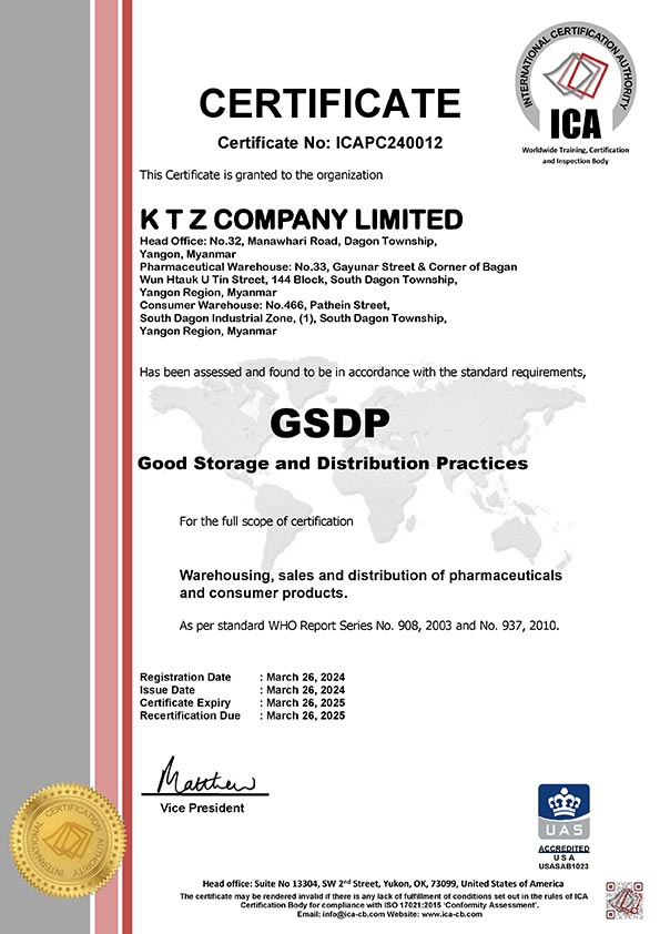 Achieved GSDP (Good Storage & Distribution Practice) certification.