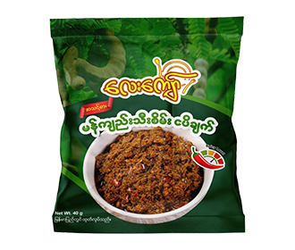 ကြက်သွန်နီ၊ ကြက်သွန်ဖြူ၊ မန်ကျည်းသီးစိမ်း၊ ပုဇွန်ခြောက်၊ ငရုတ်သီး၊ ဆီ၊ ဆား၊ အချိုမှုန့် ၊ မျှင်ငပိ၊ နနွင်း၊ E211 ၊ MSG