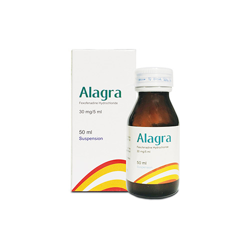 Alagra Suspension: Each 5 ml suspension contains Fexofenadine Hydrochloride USP 30 mg.