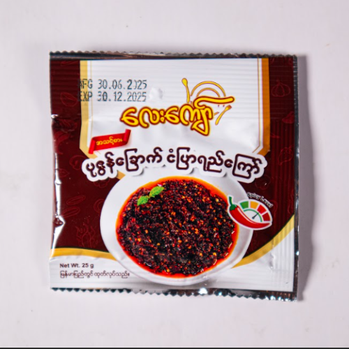 ကြက်သွန်နီ၊ ရေ၊ ဆီ၊ မန်ကျည်းသီး၊ ငရုတ်သီး၊ ကြက်သွန်ဖြူ၊ ပုဇွန်ခြောက်၊ ဆား၊ ငံပြာရည်၊ E211၊ MSG