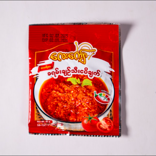 ခရမ်းချဉ်သီး၊ ကြက်သွန်နီ၊ ရေ၊ ဆီ၊ ငရုတ်သီး၊ ကြက်သွန်ဖြူ၊ ဆား၊ နနွင်း၊ မျှင်ငပိ၊ E211၊ MSG